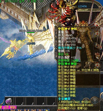 【神龙使者】每隔一小时,土城药店刷1只神龙使者,杀死后必爆10W元宝+装备宝石!