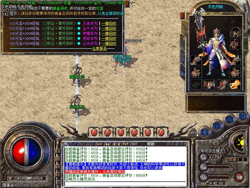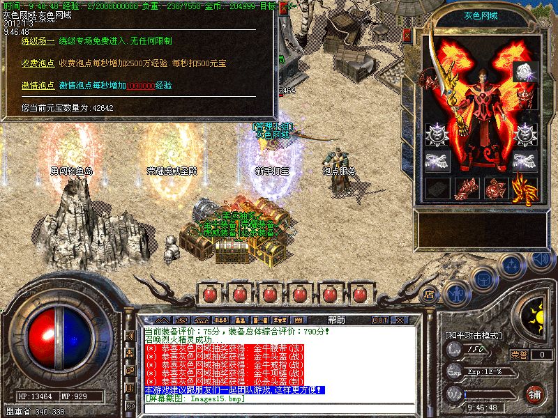 【王者天堂】每天15点.19点.0点开放.此地图任何大小怪物都可以有几率爆出雷霆和战神装备.