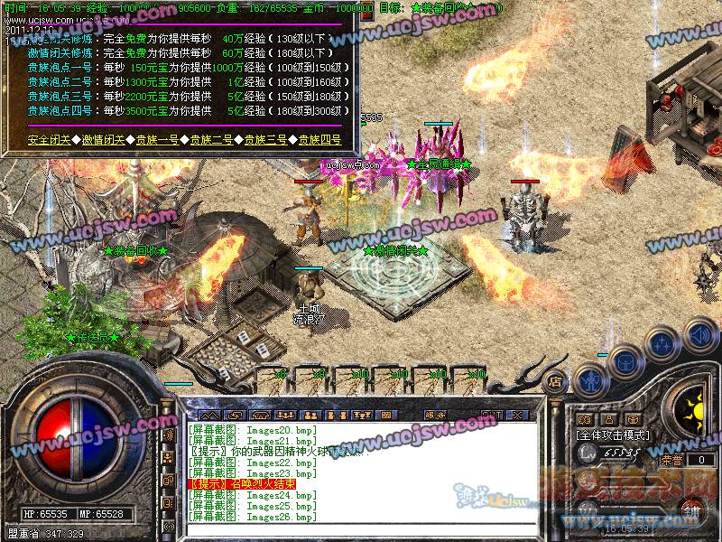 关于攻沙奖励的公告:新区第一任沙巴克城主奖励:150万元宝;老区(合区后)攻沙的奖励为:50万元宝;老区天天攻沙,让大家激情爽歪歪!