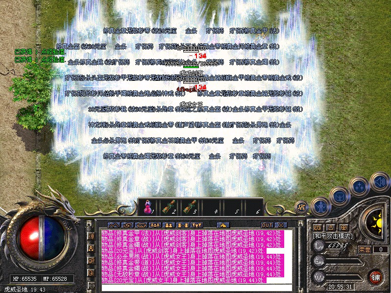增加最新地图三国沙场和虎威圣地 ,是本服打宝的绝佳地图,多人合作,一天打几套倚天没问题,也有虎威爆哦!