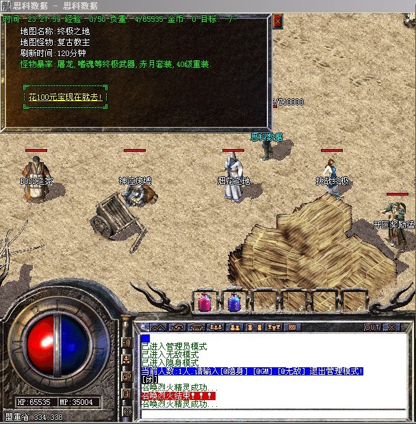 〖提示〗:本服务器为长期服,拒绝家族形式玩家,禁止外援,45级以下禁止攻城!为避免被删号,家族玩家请绕行,谢谢合作!晚9点到10点之间,藏宝阁沙巴克秘史可以传送进入皇宫!
