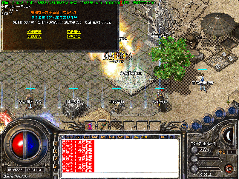 【更新】财富劫阵,BOSS爆出财富神石可以启动财富阵,启动的同时可以随机获得元宝!!满188层土药将会出现大量的元宝!!具体请查看土城财富劫阵NPC!!