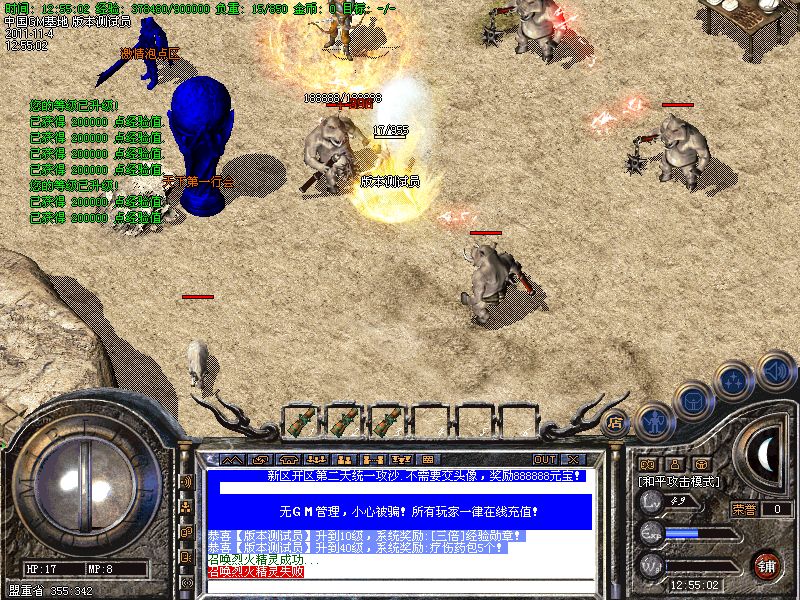 【新手介绍】:非RMB玩家,去[三人天堂]打怪爆装备,可回收大量元宝!可以爆到金牛、炎龙、荣耀、必杀、主宰、传奇、玉兔装备!练级带3倍经验勋章去疯狂练级圣地!