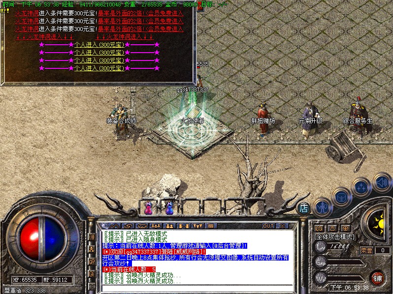 VIP打宝地图可以单人进入可组队进入,里面刷的BOSS可暴本服所有装备,和技能.暴率相当高!!