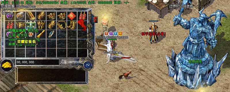 初级装备:疯狂打宝,高级打宝,难度递增,怪物爆率高,爆出传奇、特戒等